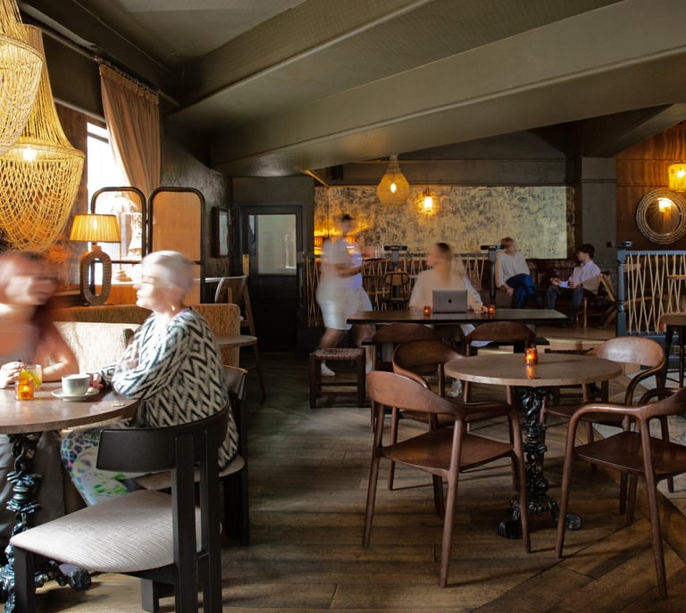 Booths, screens, curtains and low level seating provide cosy nooks for people to while away the hours over a drink.