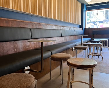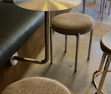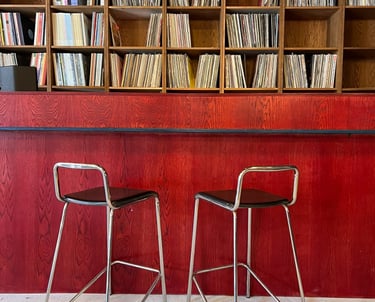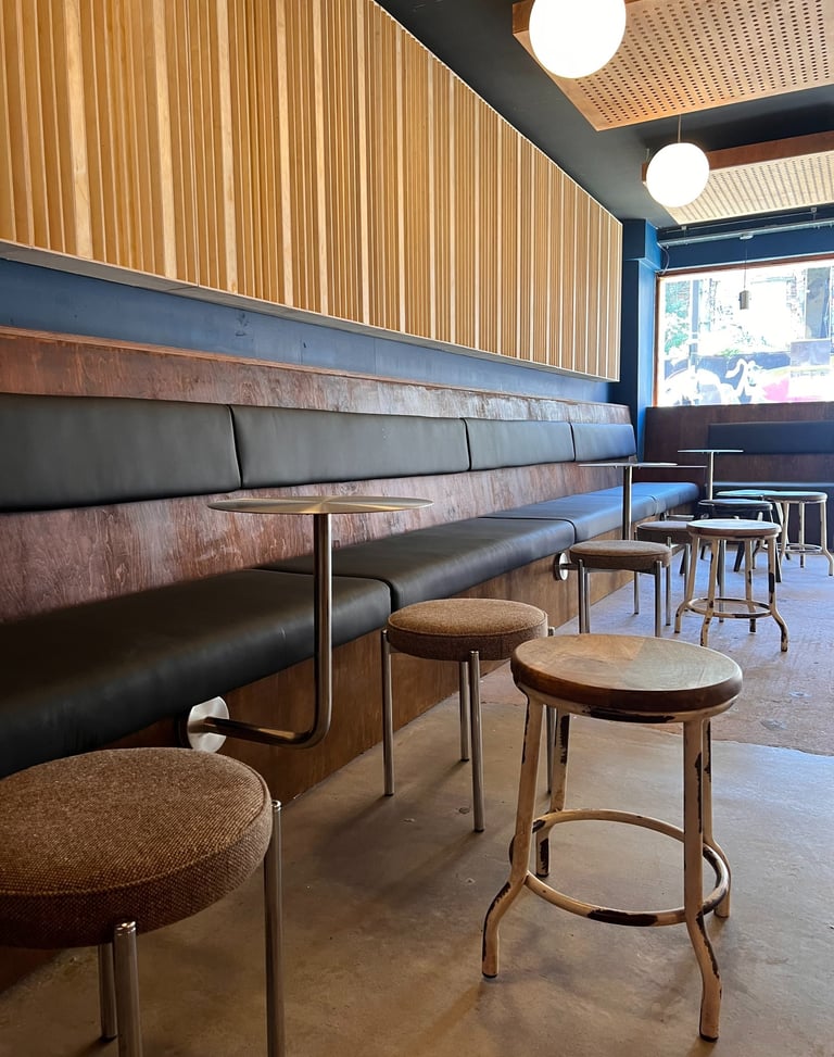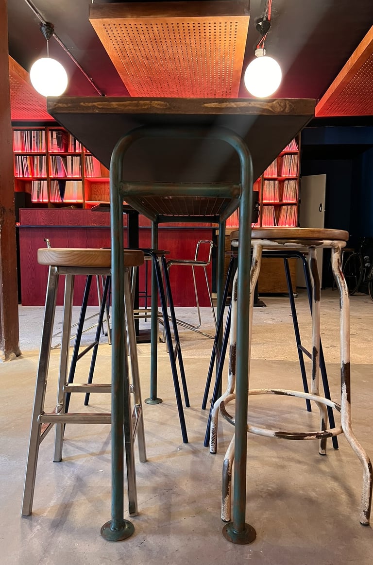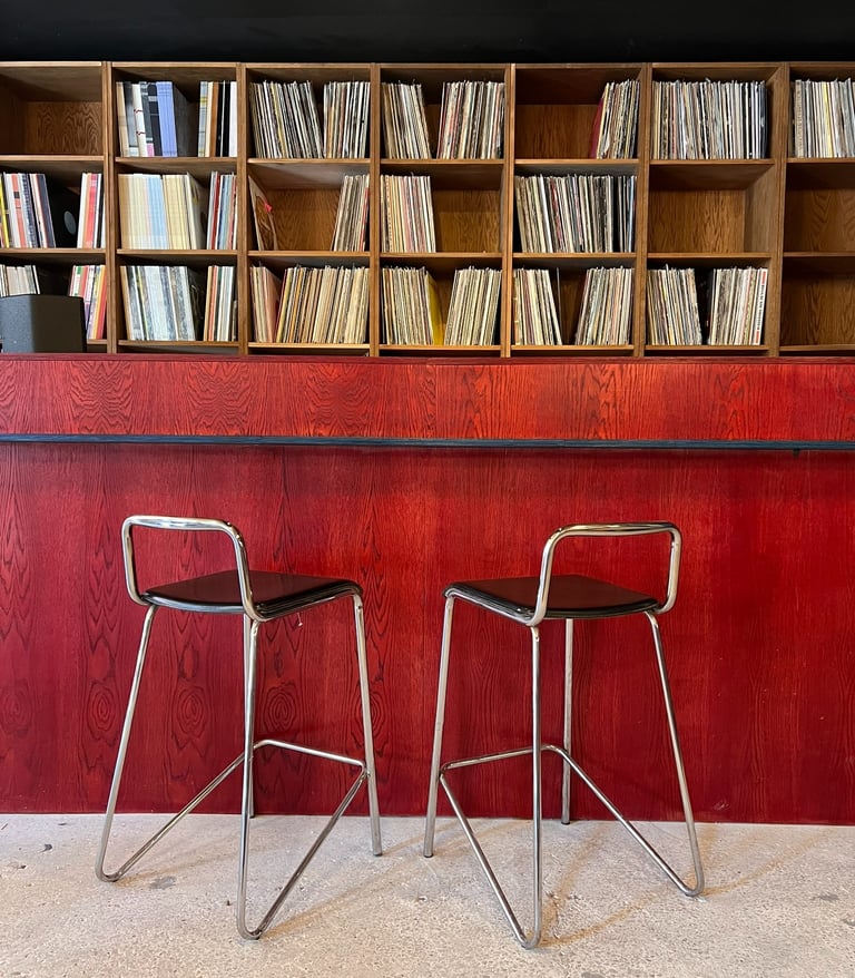 The narrative for this space sat at the intersection of underground music culture, modern eclecticisms and DIY spirit. It wasn't about replicating a specific style but about crafting a layered atmosphere that felt raw and alive with possibility. A lot of time was spent sourcing and curating vintage pieces to give the desired lived-in aesthetic with some iconic mid-century silhouettes. Functionality was carefully considered, there had to be agility in the furnishings to allow for people to dance. Texture and lighting were important making this a sensory experience elevating the mood. Contrasting organic materials against industrial.